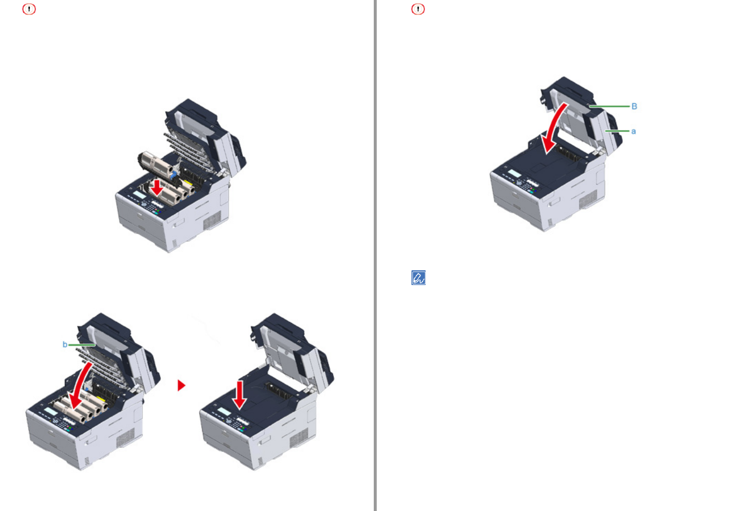 Schließen Sie das Ausgabefach (b) langsam und drücken Sie zur Bestätigung