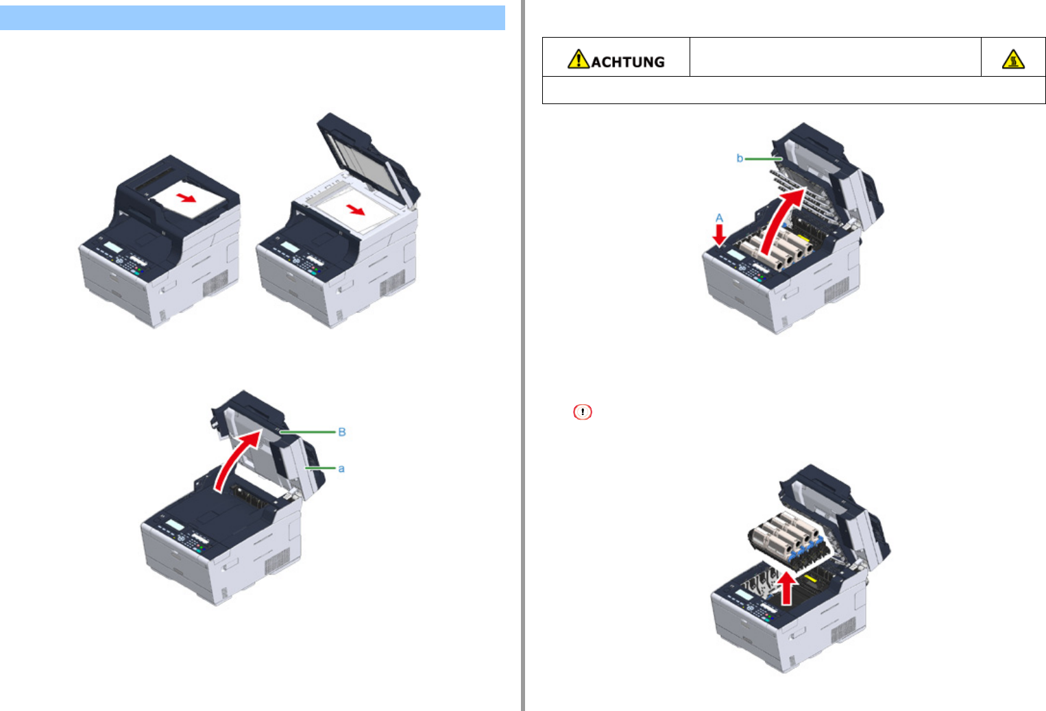 Halten Sie den Griff (B) und öffnen Sie die Scannereinheit (a) vollständig.
