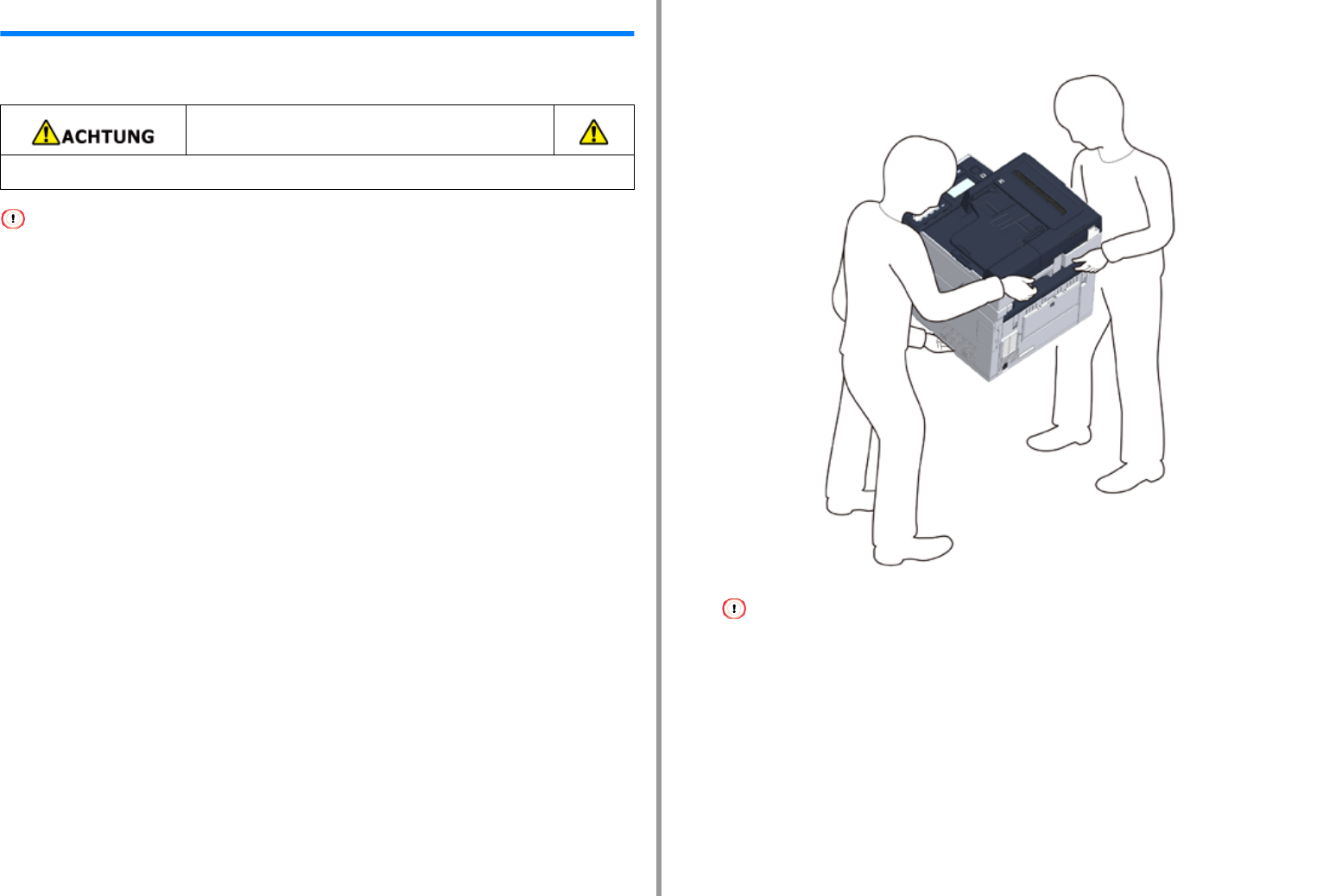 Heben Sie diesen Drucker mit 2 Personen an, weil er etwa 31 kg wiegt.