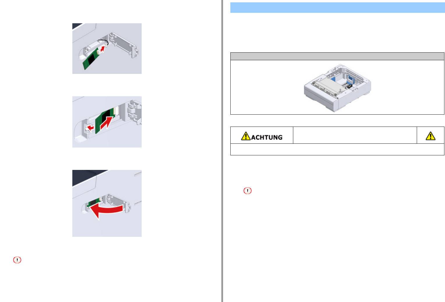 Die Installation der zusätzlichen Kassette mit angeschaltetem Gerät kann zu Fehlfunktionen am Gerät und an der