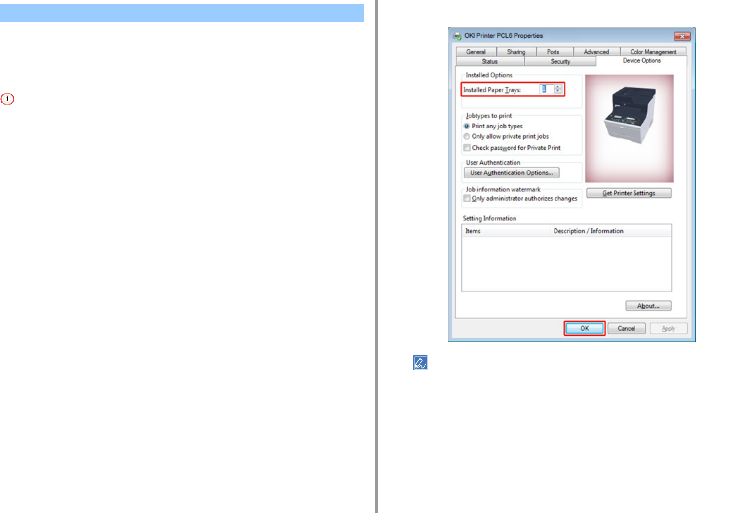 wählen Sie [OKI MC563 PS (OKI MC563 PS)] in den [Printer Properties