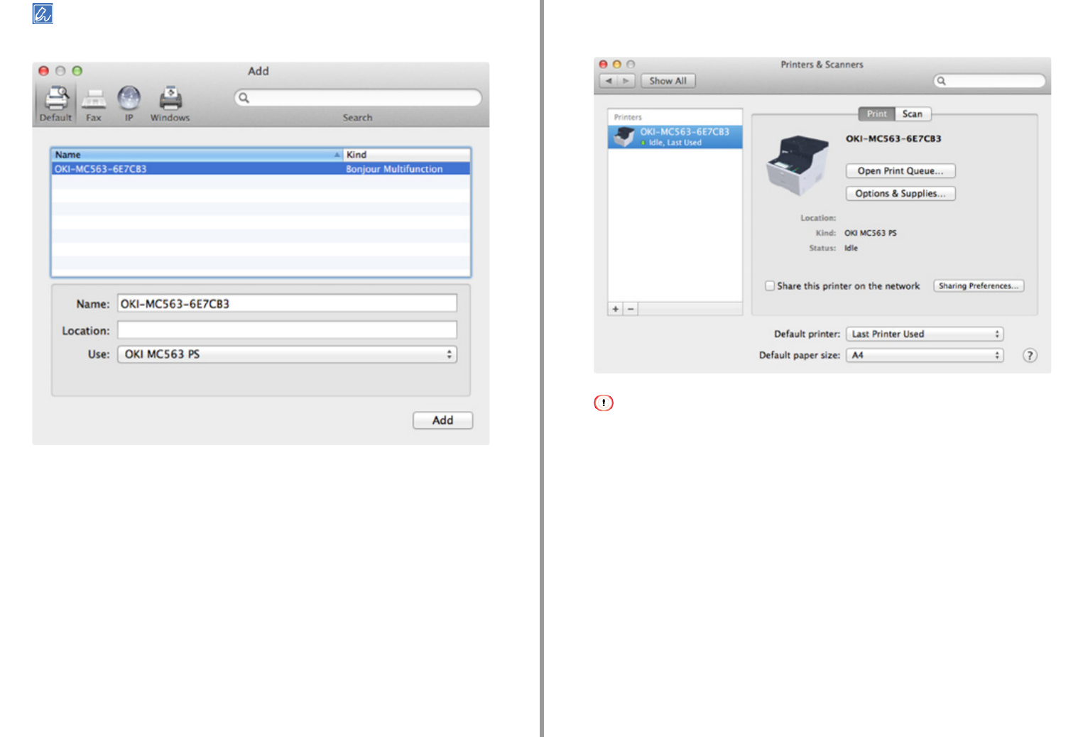 und [OKI MC563 PS (OKI MC563 PS)] für [Kind (Art)] angezeigt wird.