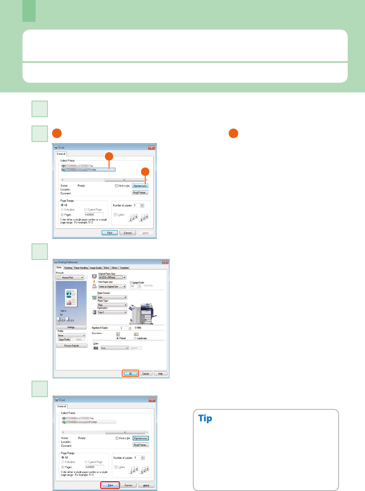 The basic operations of the printer are as follows. This is for printing from a Windows computer with a PCL Printer Driver