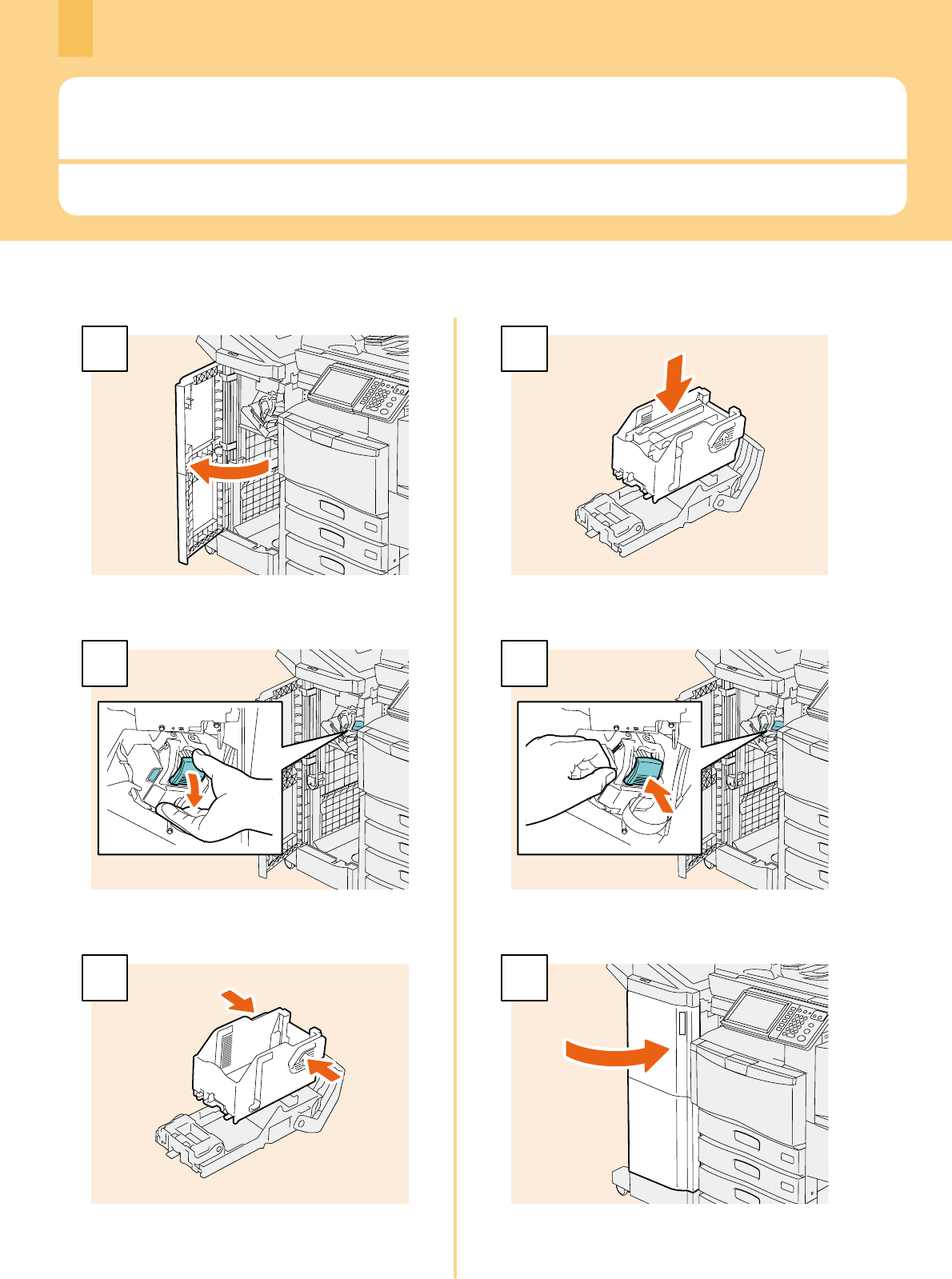When “Check staple cartridge” appears on the touch panel, replace the staple cartridge according to the following procedures.