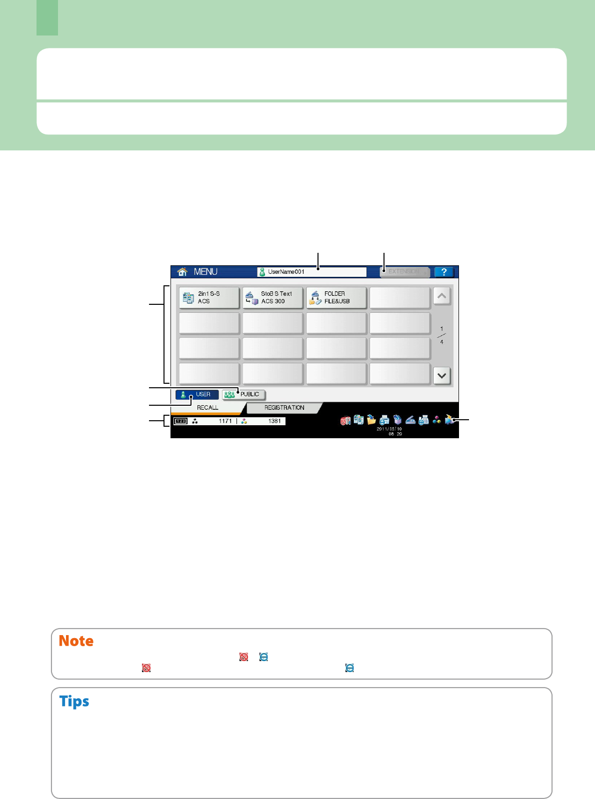 eliminating the need to perform complicated settings every time. Templates can be used in copying, scanning and sending a fax. For