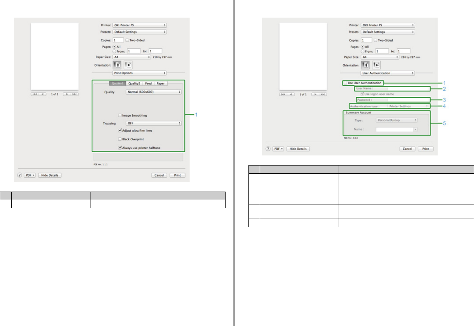 • Feld [Druckoptionen] • [Benutzerauthentifizierung] Bereich