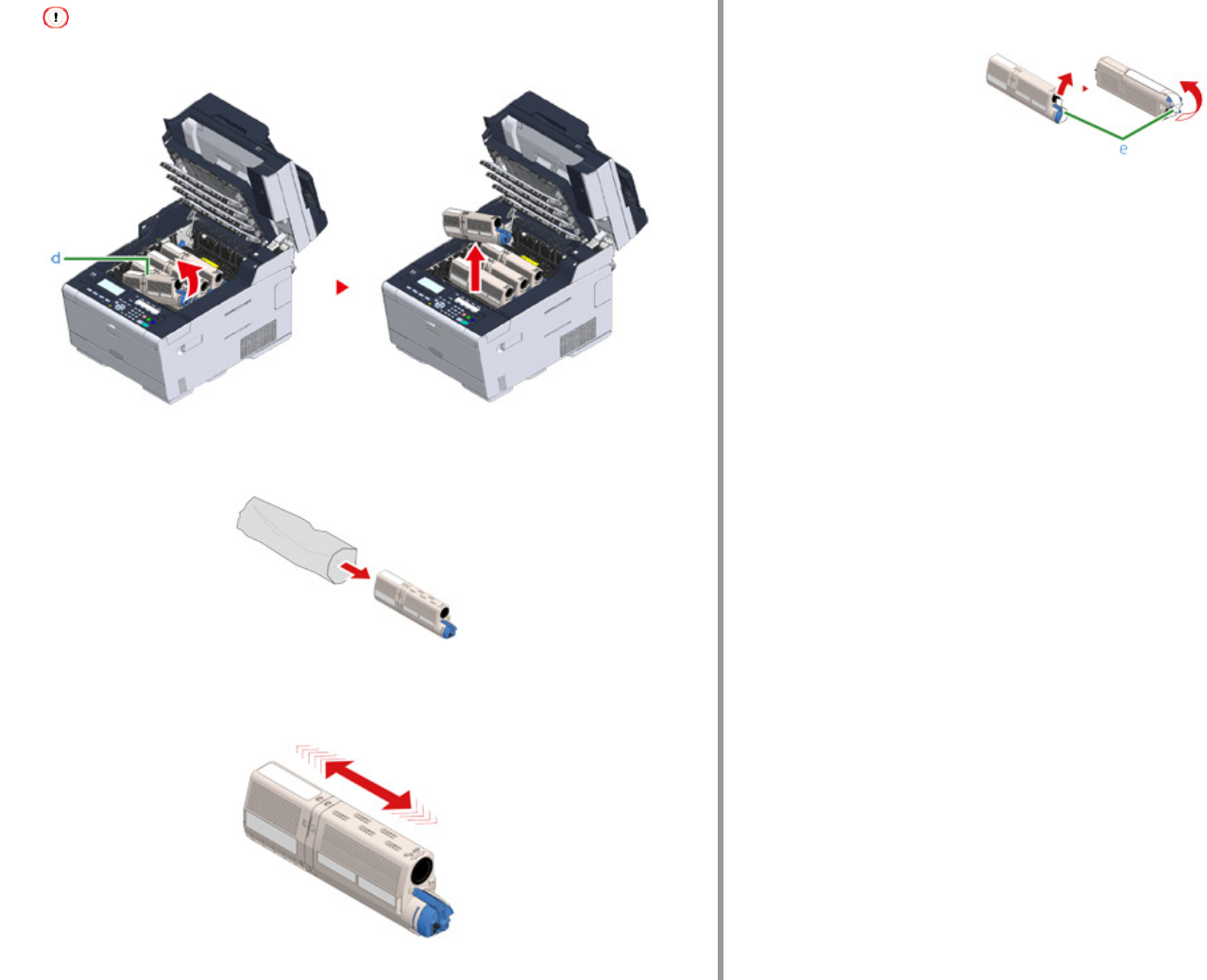 Setzen Sie die neue Tonerkartusche (d) ein, indem Sie ihre linksseitige