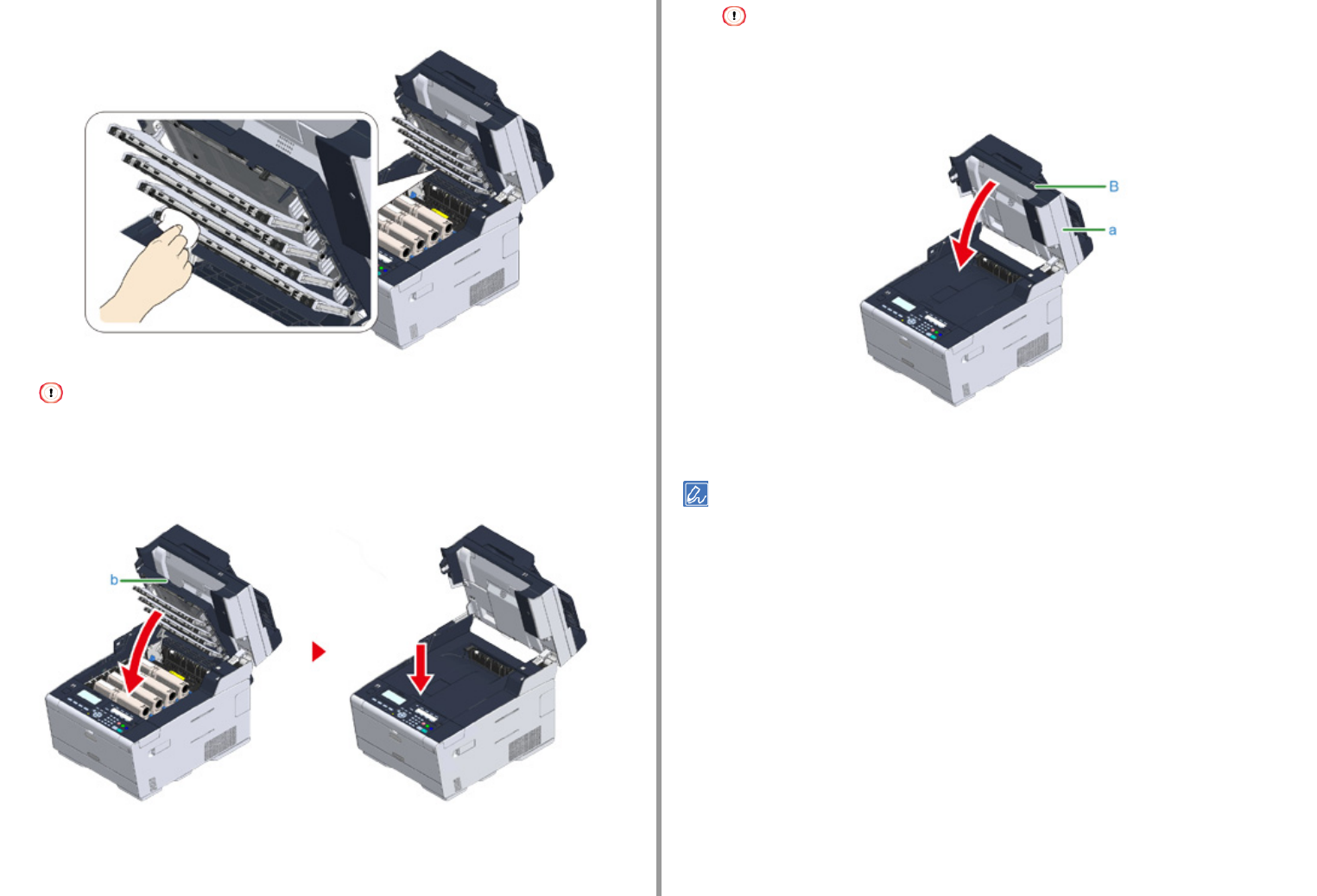 Schließen Sie das Ausgabefach (b) langsam und drücken Sie zur Bestätigung