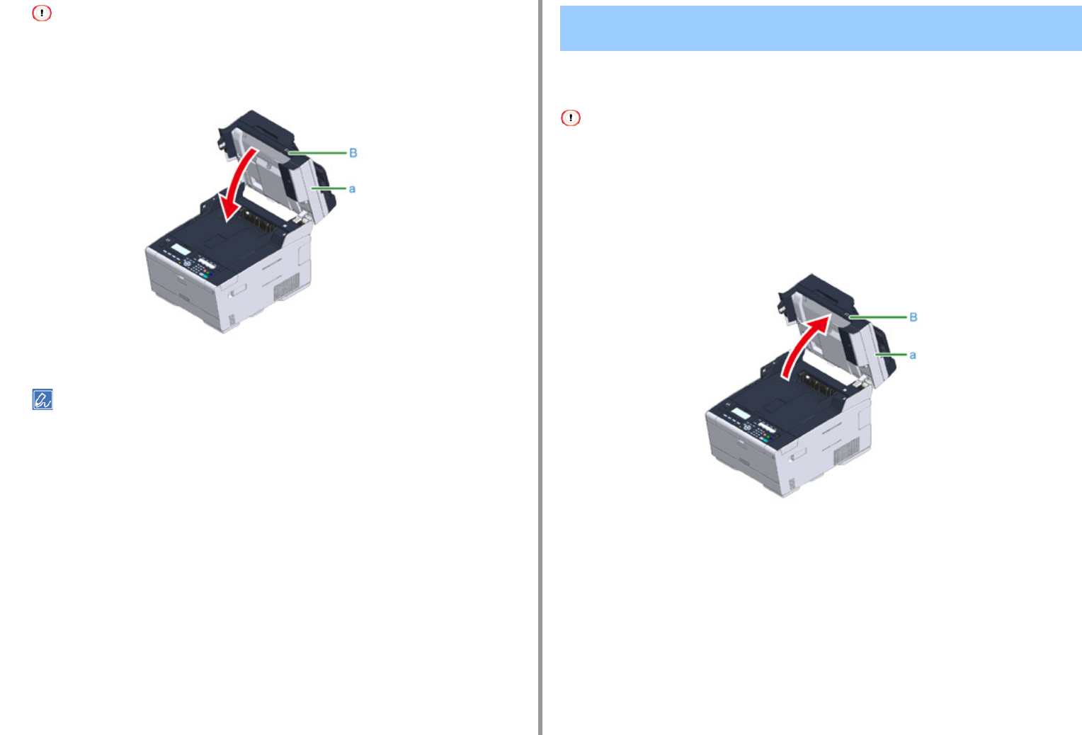 Halten Sie den Griff (B) und öffnen Sie die Scannereinheit (a) vollständig.