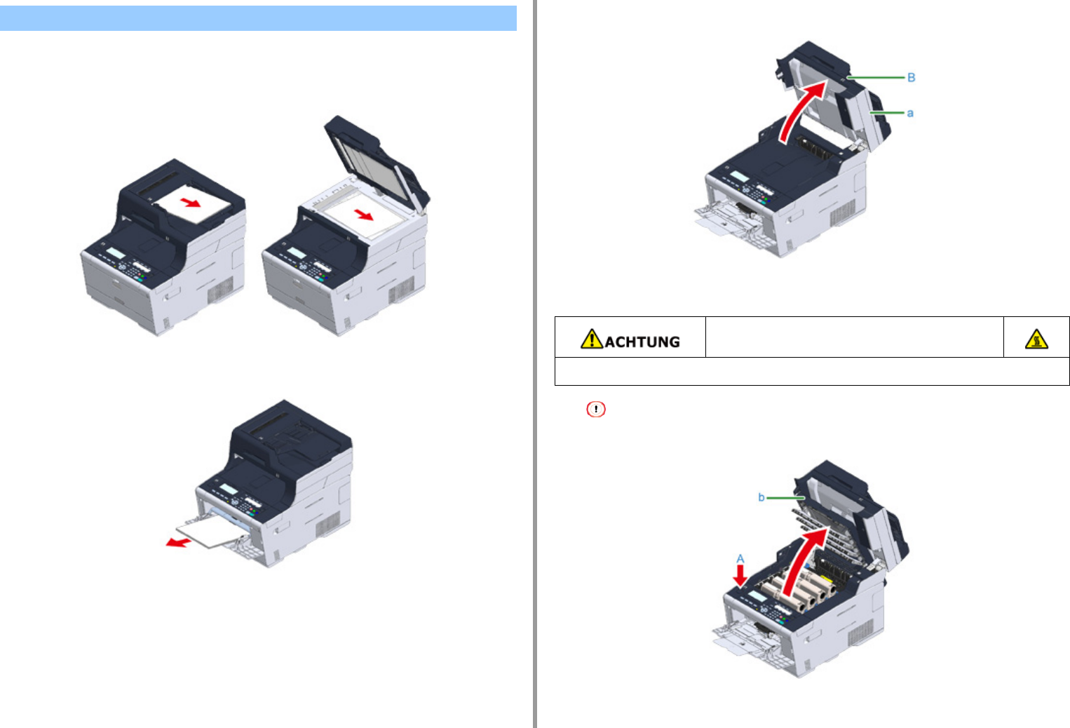 Halten Sie den Griff (B) und öffnen Sie die Scannereinheit (a) vollständig.