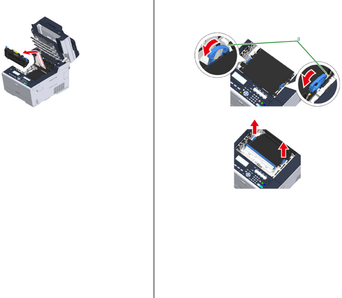 Transportbandeinheit. Halten Sie dabei die Verriegelungshebel fest.