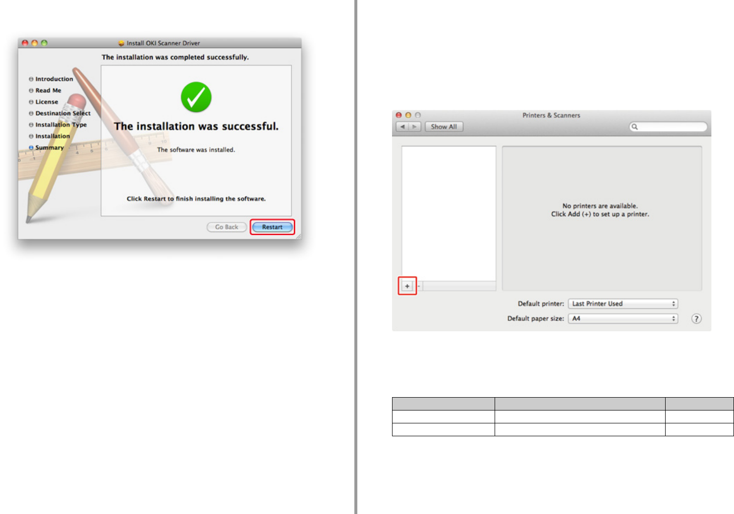 • Installieren Sie den Mac OS X PS-Druckertreiber.