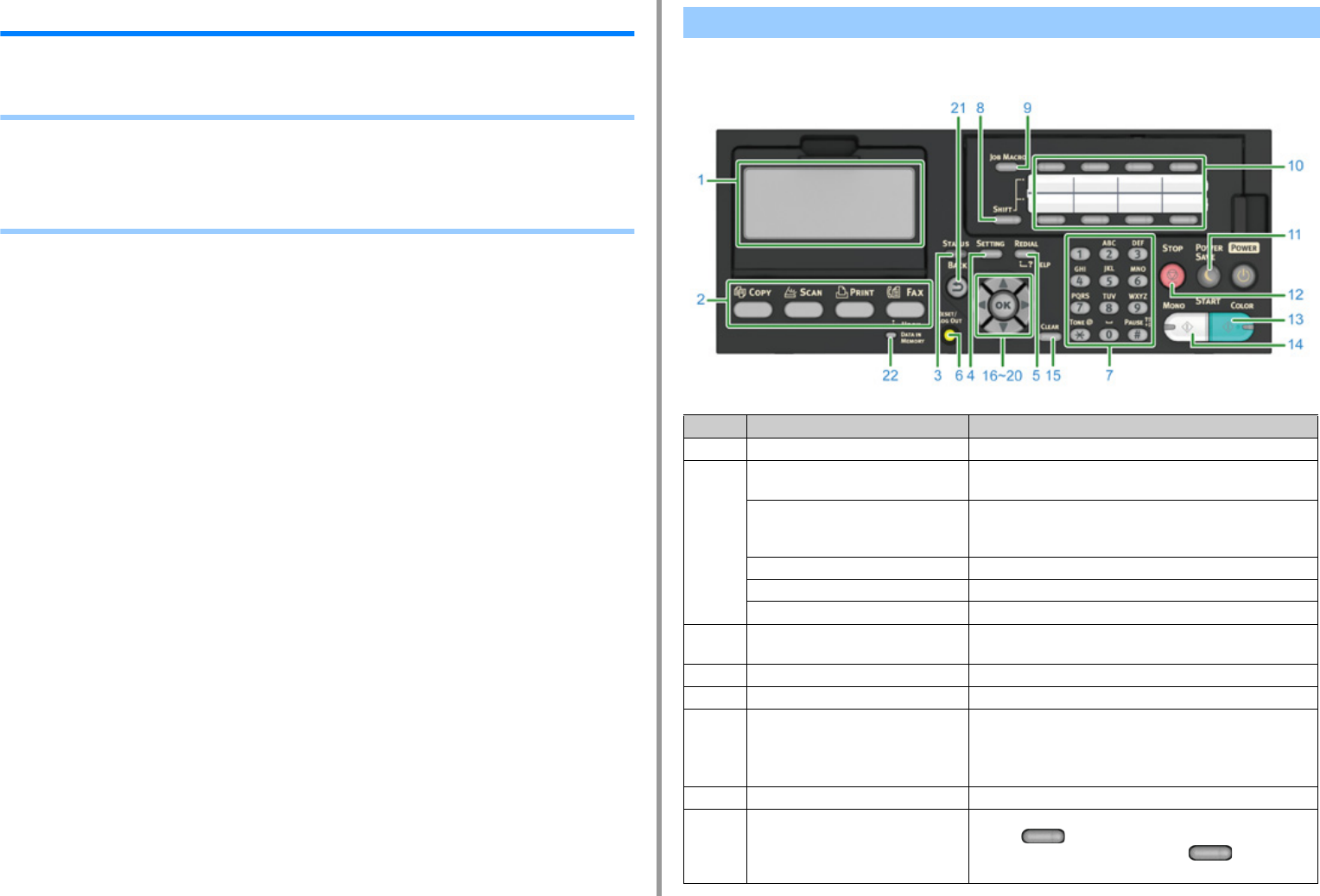• Bezeichnungen und Funktionen der Tasten auf dem Bedienfeld