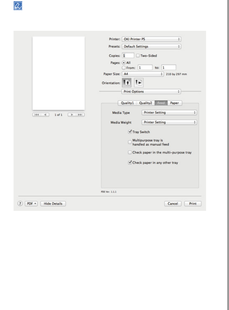Wenn die Einstellungsdetails im Druck-Dialogfeld für Mac OS X 10.8.5 bis 10.11 nicht angezeigt werden, klicken