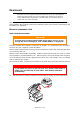 10. Push the coloured release lever (1) away from you to lock the toner cartridge onto