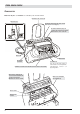 LÄRA KÄNNA FAXEN KOMPONENTER Bilden visar de ytter- och innerdelar som är likadana på de olika faxmodellerna. FÖRLÄNGARE FÖR PAPPERSSTÖD ANSLUTNINGSJACK AUTOMATISK MATARE (ASF) FÖR VANLIGT PAPPER Max kapacitet: 40 ark (80g/m2). AUTOMATISK ARKMATARE (ADF) FÖR ORIGINAL SOM SKA SÄNDAS OCH KOPIERAS MAX KAPACITET: UPP TILL 5 ARK A4.