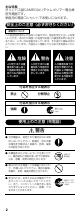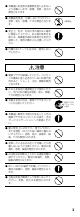 使用上のご注意 (電池) 危険 ● 直接ハンダ付けしたり、変形や改造をしないでくださ い。 ● を金属等で接続、金属製のネックレスやヘアピ ン等と一緒に持ち運んだり、保管しないでください。 ● 電源コンセントや、自動車のシガレットライターの差 し込み等に直接接続しないでください。 ● 火中への投下や、加熱をしないでください。 ● 電池の液が目に入った場合は、すぐにきれいな水で充 分に洗い流し、直ちに医師の治療を受けてください。 警告 ● 所定充電時間を越えても充電が完了しない場合は充電 を中止してください。 ● 電池を水や海水などにつけたり、端子部を濡らさない でください。 ● 外装を剥がしたり、キズをつけないでください。 ● 液漏れしたり、変色、変形その他異常を見つけたとき は使用を避けてください。 ● 乳幼児の手の届かない場所に保管してください。 ● 電池の液が皮膚・衣類へ付着したときは、直ちにきれ いな水で洗い流してください。 注意 ● 指定した電池以外は使用しないでください。 ● 電池に強い衝撃を与えたり、投げたりしないでくださ い。 ● 充電した電池、放電した電池を一緒に混ぜて使用しな いでく