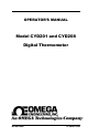 OMEGA Model CYD201/CYD208 User’s Manual WARRANTY OMEGA warrants this unit to be free of defects in materials and workmanship and to give satisfactory service for a period of 13 months from date of purchase. OMEGA Warranty adds an additional one (1) month grace period to the normal one (1) year product warranty to cover handling and shipping time. This ensures that our Customers receive maximum coverage on each product. If the unit should malfunction, it must be returned to the factory for evaluation.