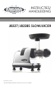 INSTRUCTIES/ HANDLEIDING Eat well, drink well and live well with Omega J8227/J8228S SLOWJUICER Nederlands, juni 2014 LEES DEZE GEBRUIKSAANWIJZING ZORGVULDIG DOOR VOOR GEBRUIK