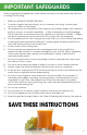 IMPORTANT SAFEGUARDS When using electrical appliances, basic safety precautions should always be followed including the following. 1. READ ALL INSTRUCTIONS BEFORE USING. 2. To protect against electrical shock, do not immerse cord, plug, or main body (motor) in water or other liquid. 3. This appliance is not intended for use by persons (including children) with reduced physical, sensory, or mental capabilities, or lack of experience and knowledge.