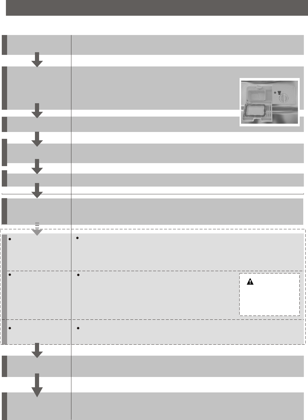 Warning: wait a few minutes (about 15 minutes) before unloading the dishwasher to avoid scald,as