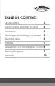 TABLE OF CONTENTS Specifications 3 Instructions for Machine Transport 4 Installation 4 Cleaning and Sanitizing Procedures 5 Exploded View 6 Parts List 7 Disassembly and Temperature Control 8 Electrical Diagram 9 Warranty 10