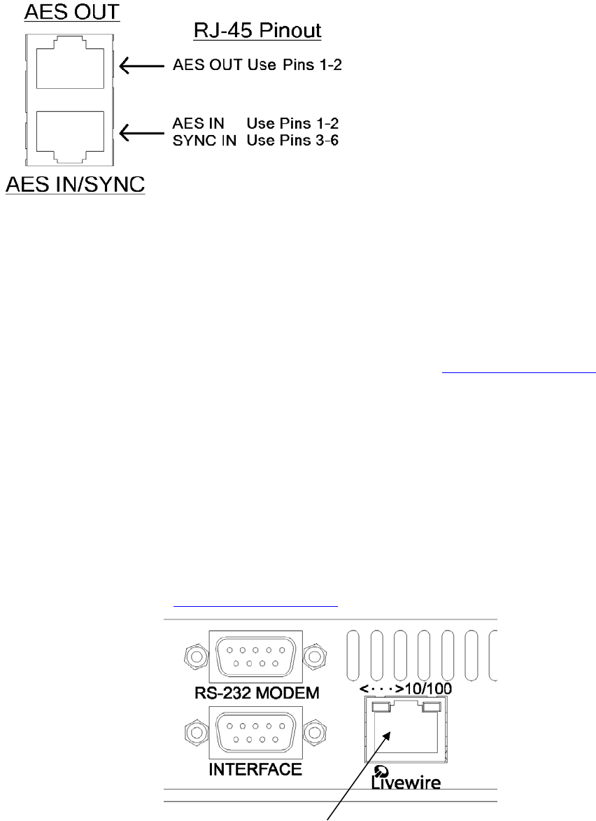 The RJ-45 10BaseT / 100BaseT Ethernet / Livewire I/O jack can be used simultaneously for both TCP/IP based