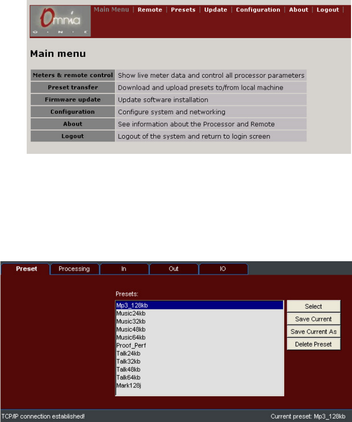 OmniaONE’s front panel. To refresh the front panel preset name, simply click the OmniaONE’s jog wheel to enter