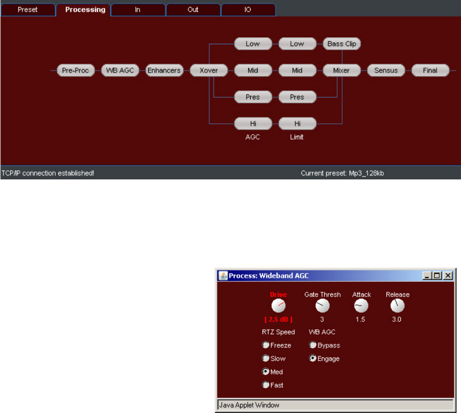 Each block is a button that can be clicked to open a new applet window containing the controls for that processing