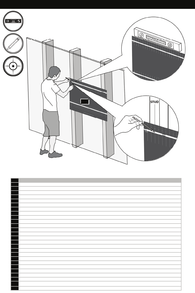 Utilizar placa de parede ou escantilhão de parede para marcar as localizações da armação