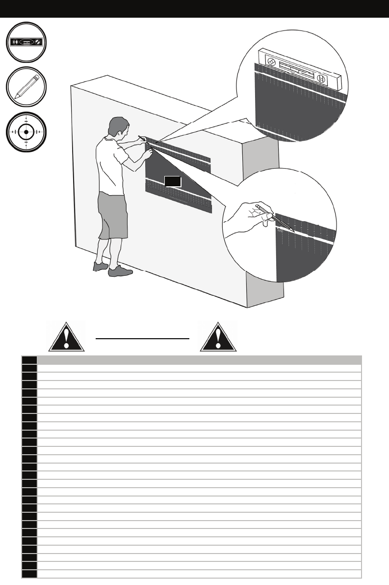 Utilisez la plaque ou le gabarit mural pour marquer les emplacements de montage