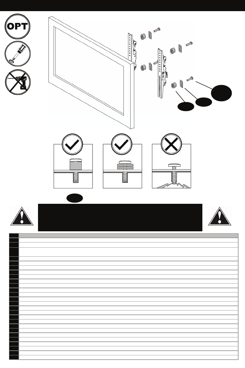 WHEN INSTALLING FLAT PANEL TV DO NOT OVER TIGHTEN SCREWS