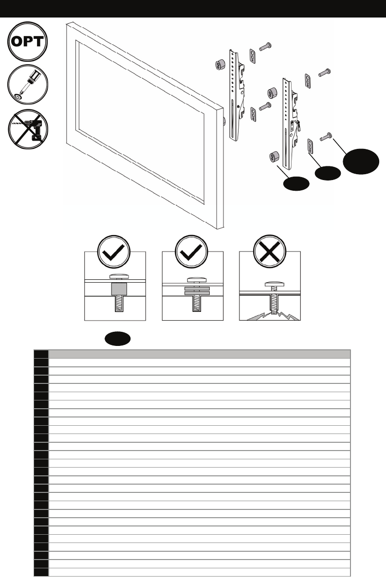 FR Utilisez les entretoises sur les trous de montage encastrés ou pour accéder aux entrées A/V