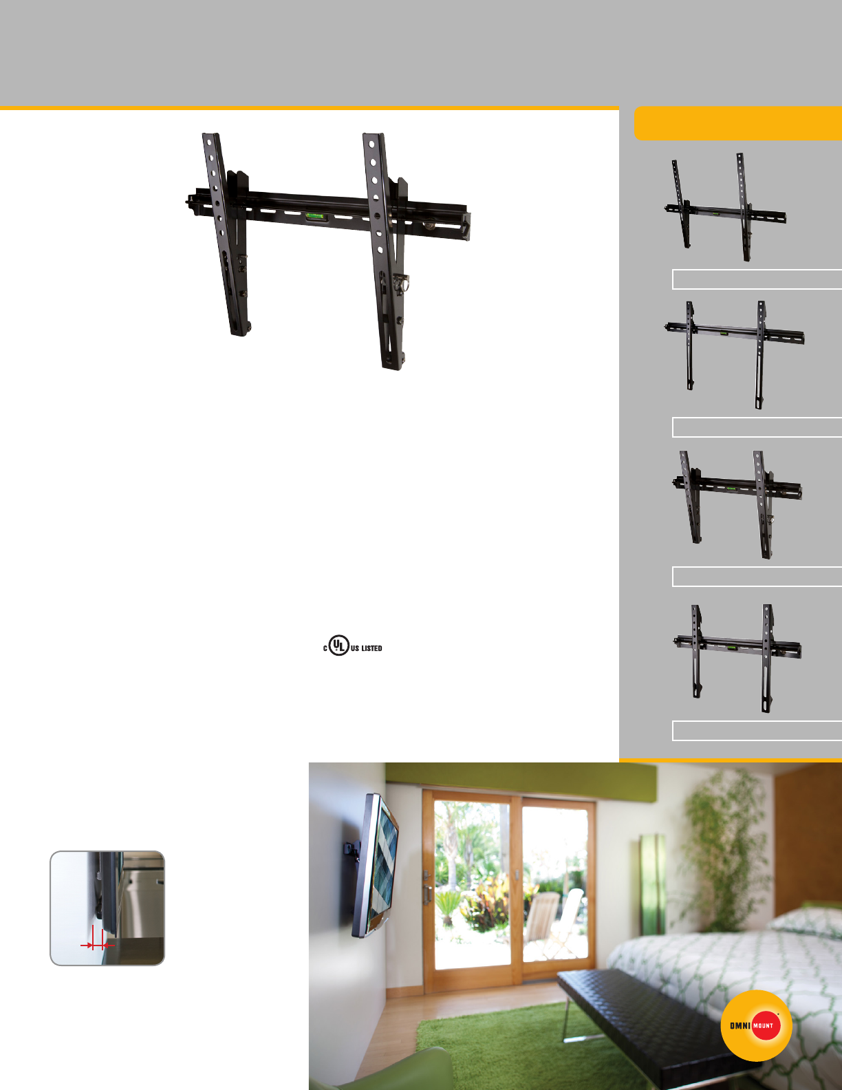 • Pinned tilt offers uniformity for TVs
