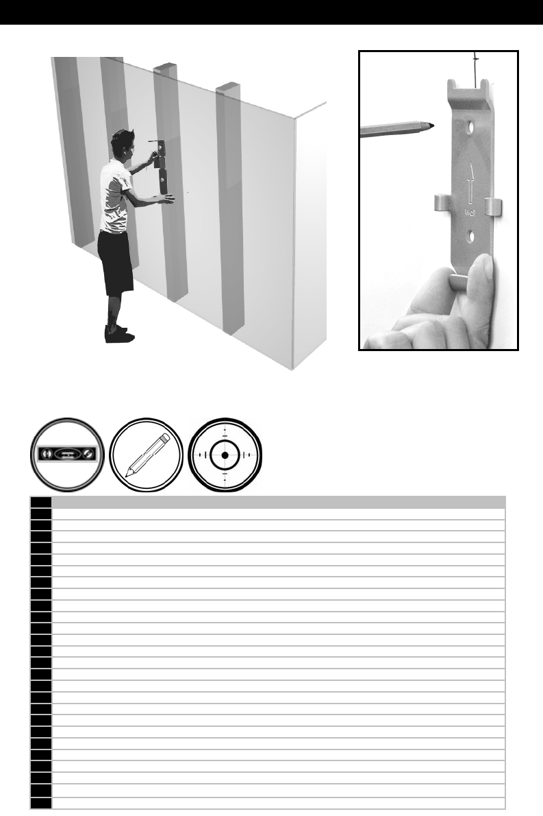Utilisez la plaque ou le gabarit mural pour marquer les emplacements de montage