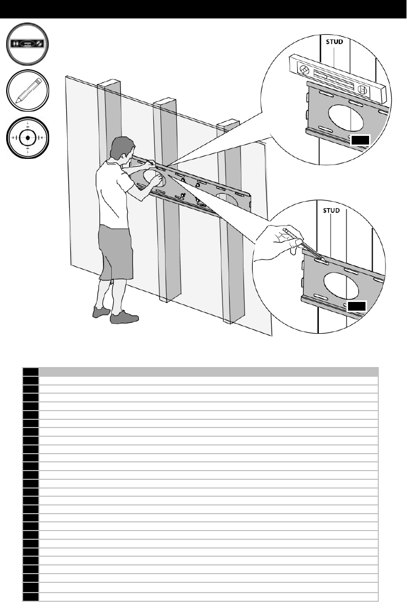 Utilisez la plaque ou le gabarit mural pour marquer les emplacements de montage