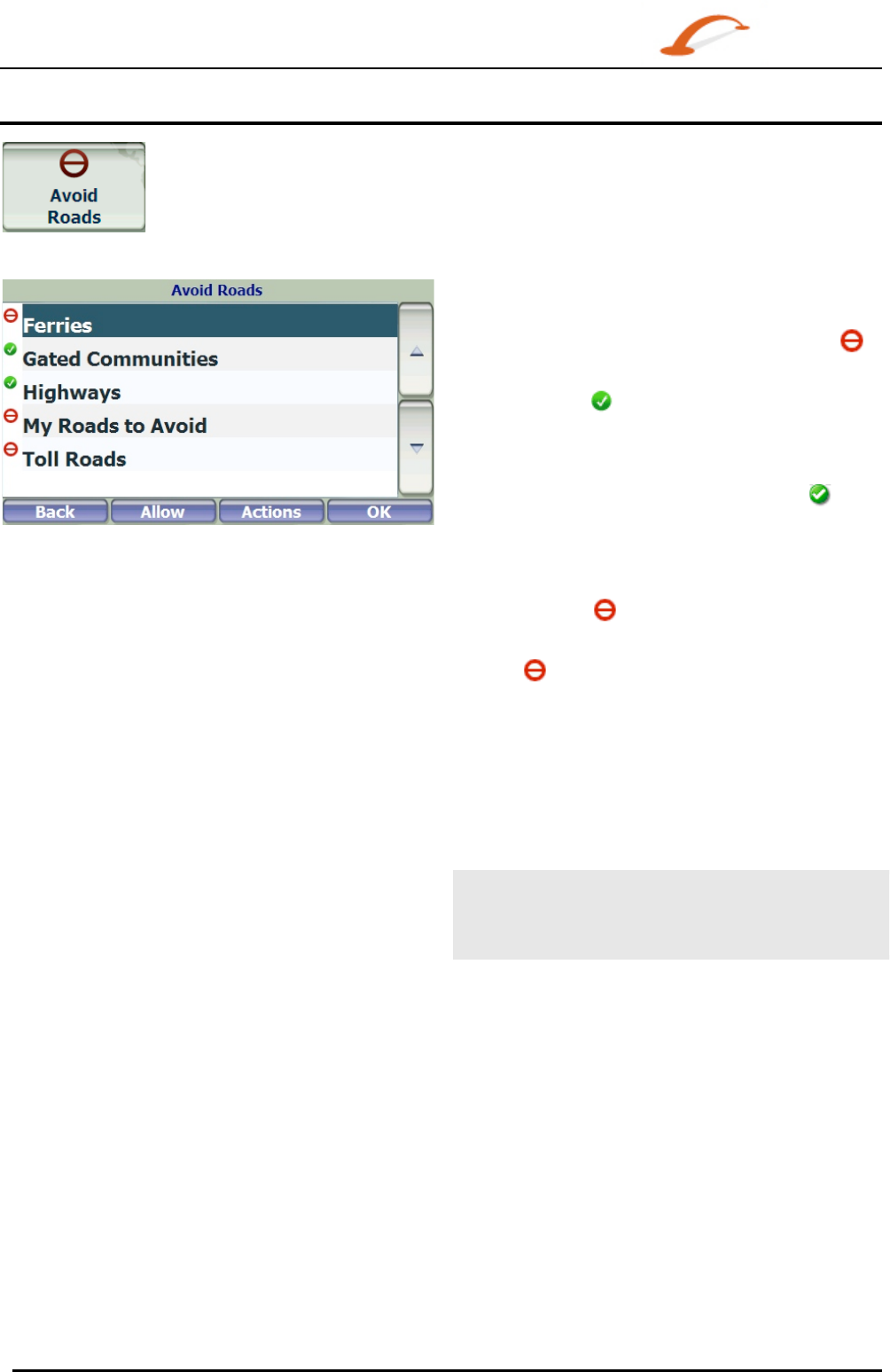calculations, and you can create your own list of specific roads to avoid. Use this feature