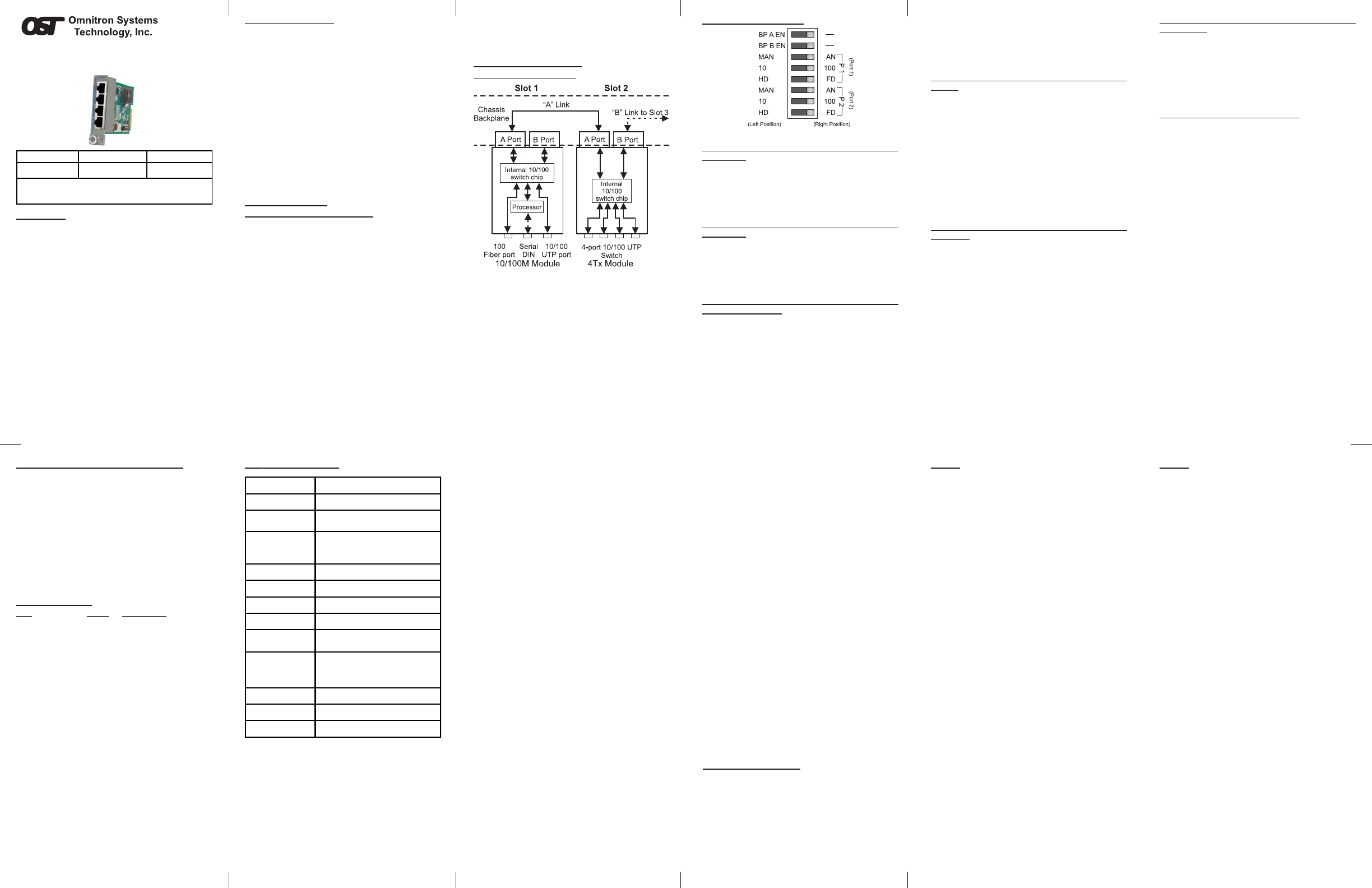 the 10/100 Ethernet Bankplane Links, the 4Tx module can