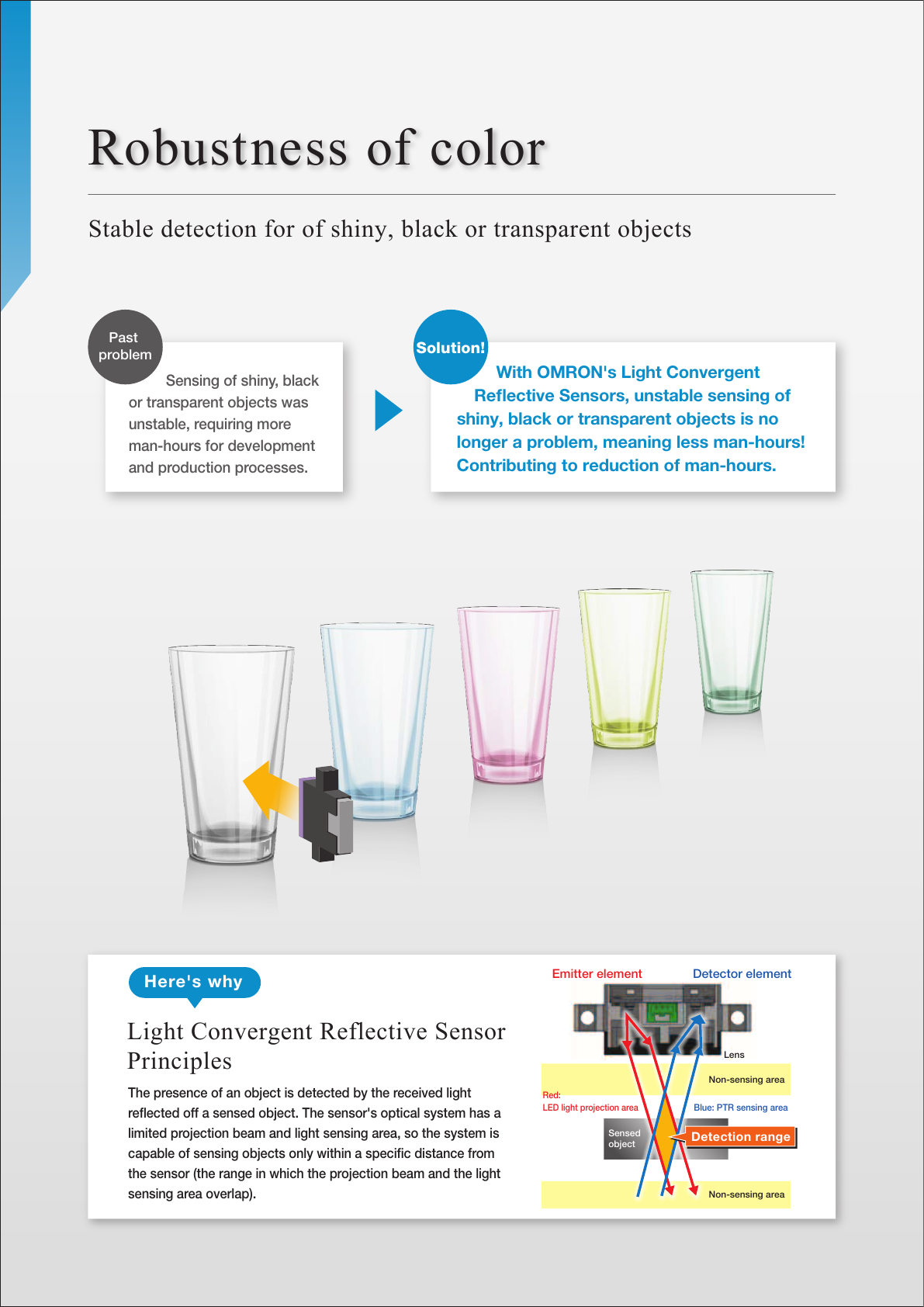 (1) At a sensing distance for white objects, a black object is not sensed.