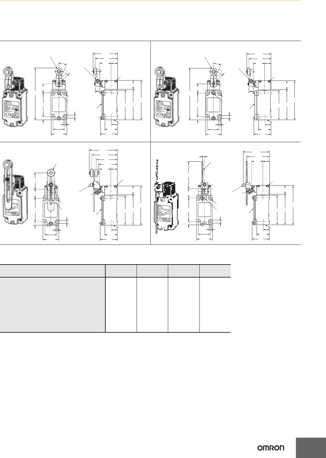 Note: Omitted dimensions are the same as those for the Roller Lever Type Models