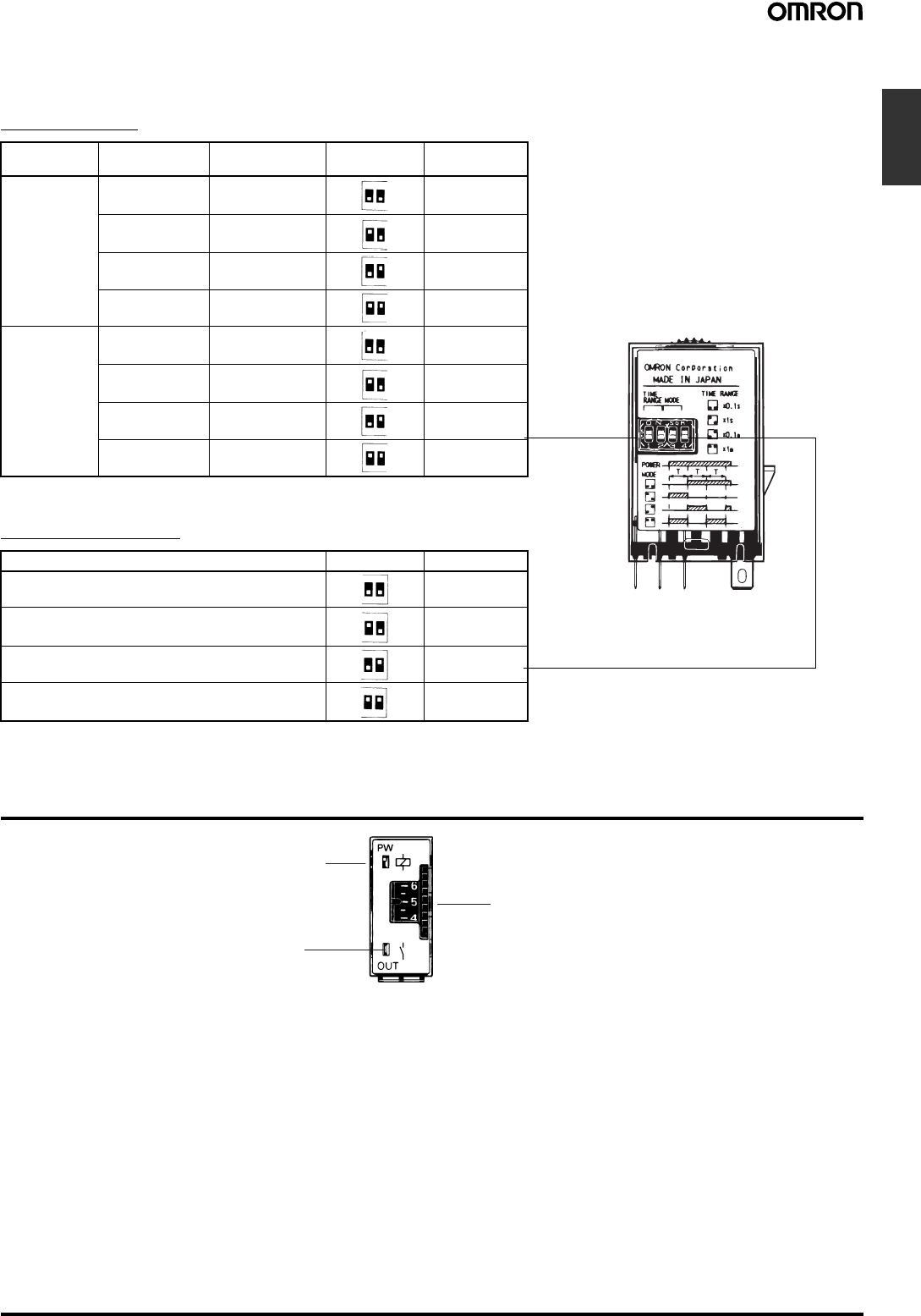 The 1-s range and ON-delay mode for H3RN-1/-2, 1-min range and ON-delay mode for H3RN-11/-21 are factory-set before shipping.