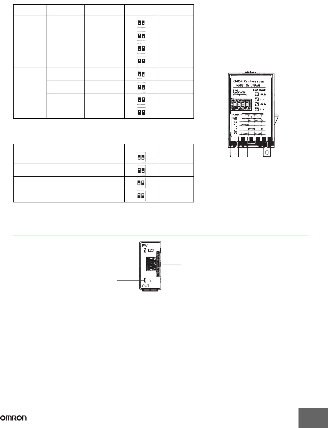 The 1-s range and ON-delay mode for H3RN-1/-2, 1-min range and ON-delay mode for H3RN-11/-21 are factory-set before shipping.