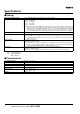 Specifications ■ Ratings Rated power supply voltage 12 to 24 VDC (Allowable voltage fluctuation range: 10 to 30 VDC) Operate resistance 0 Ω to 50 MΩ, variable Range 0: 0 to 250 kΩ Range 1: 0 to 600 kΩ Range 2: 0 to 5 MΩ Range 3: 0 to 50 MΩ Note: The range is set using the DIP switch on the side of the Sensor Amplifier. (Refer to DIP Switch Settings.) Set the corresponding pin of the DIP switch in the up position. (For range 0, set all 3 pins in the down position.