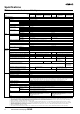 Spécifications ■ Valeurs nominales/caractéristiques Puissances nominales Type Item Rendement (typique) Entrée Tension Fréquence Courant Sortie Fonctions supplémentaires Autres Entrée 100 V Entrée 200 V Entrée 230 V Facteur de puissance Emissions d'harmoniques de courant Courant de fuite Entrée 100 V Entrée 200 V Entrée 230 V Courant d’appel Entrée 100 V (Voir remarque 1) Entrée 200 V Entrée 230 V Plage de réglage de tension (voir remarque 2) Ondulation f=20 MHz mesure f=100 MHz mesure Influence des var
