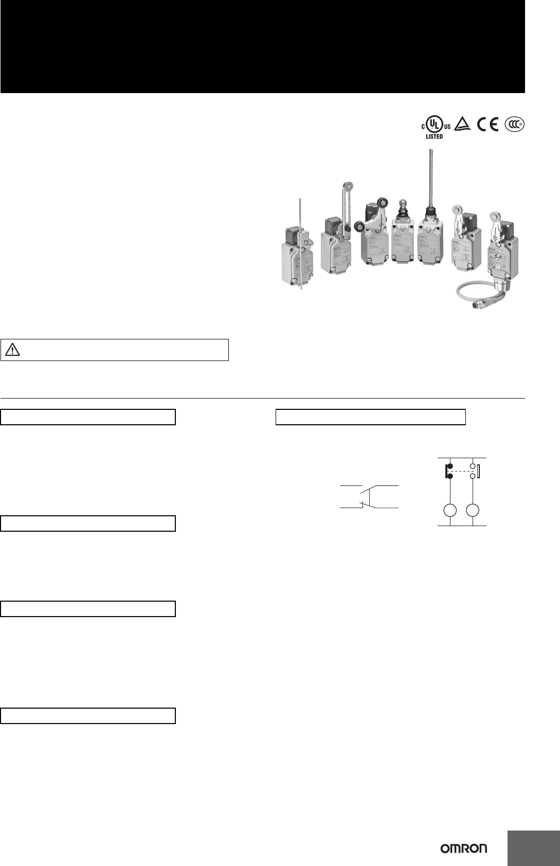 WL-N/WLM-N Safety Precautions Precautions for Safe Use • Be sure to ground. If not, there is the possibility that electrical shock occurs. • Do not touch charged switch terminals while the switch has carry current, otherwise there is the possibility that electrical shock occurs. • Do not disassemble the limit switch or touch inside of it under supplying power, otherwise there is the possibility that electrical shock occurs. • Do not touch the wire or rod type actuator in order to prevent injury.