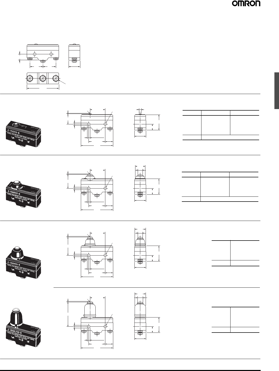 Note: 1. All drawings show the switches with screw terminals. For versions with solder terminals, remove the “-B” from the end of the part number.