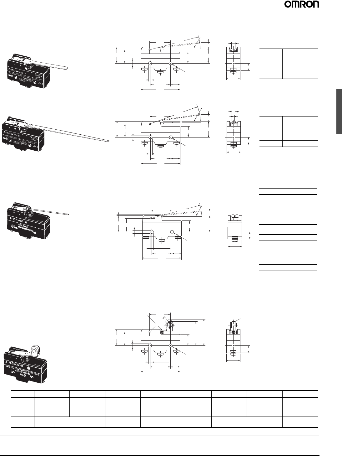 Note: 1. All drawings show the switches with screw terminals. For versions with solder terminals, remove the “-B” from the end of the part number.