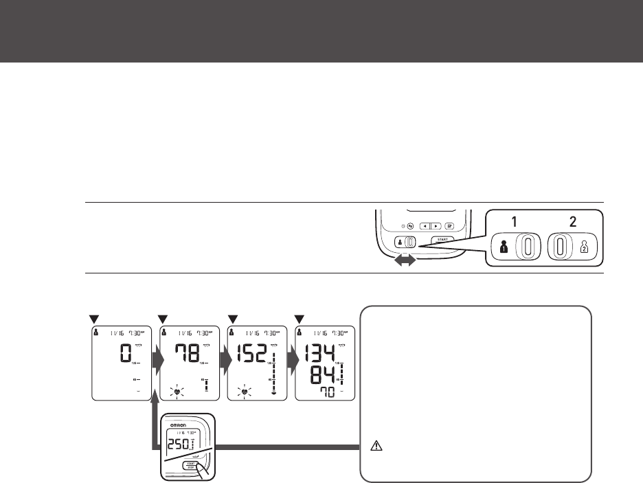 • To stop a measurement, press the START/STOP button once to deflate the arm cuff.
