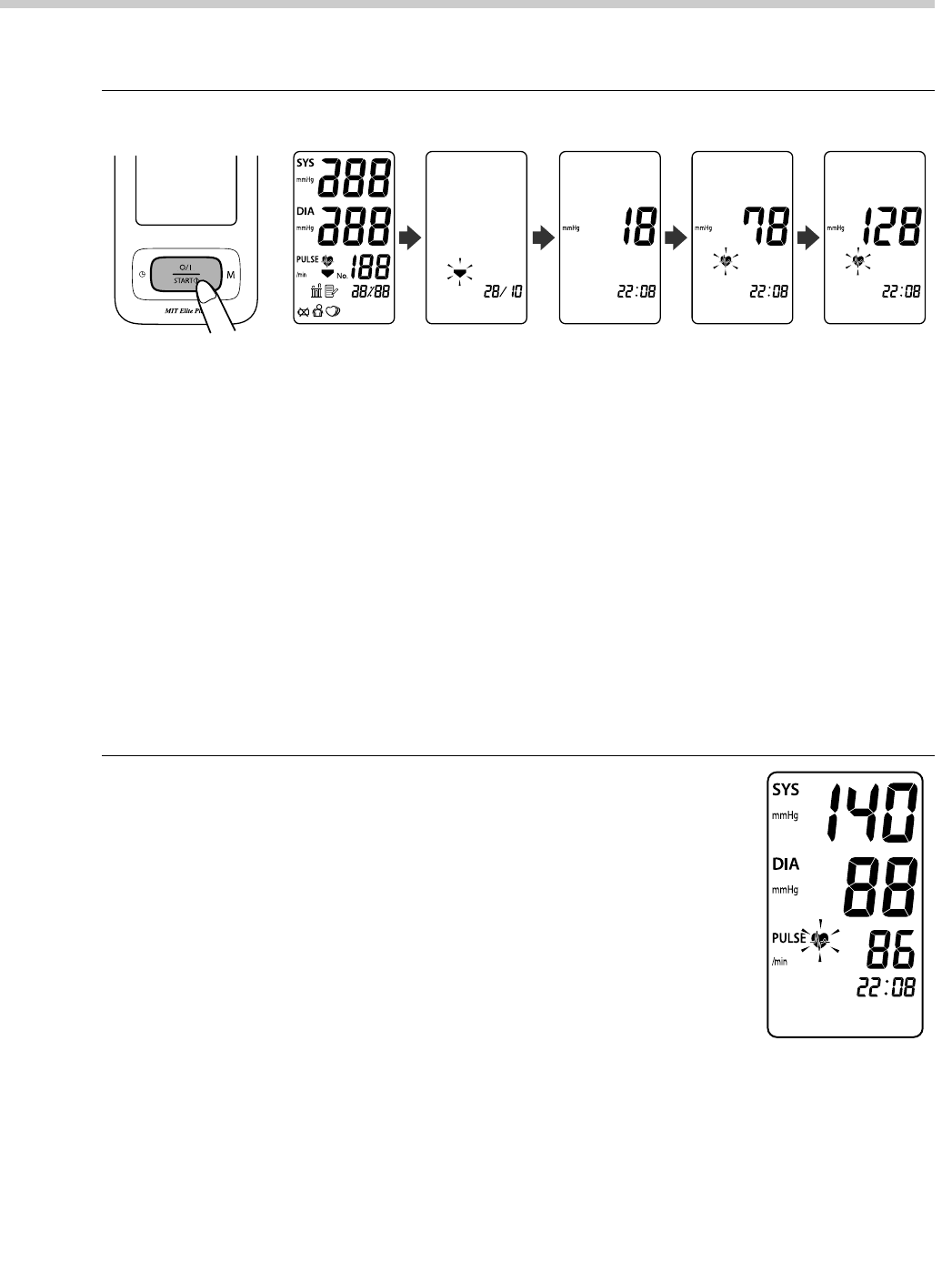 Het opblazen van de manchet wordt automatisch gestart. Tij-