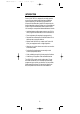 IMPK6VR manual 1.0 2/21/03 5:46 PM Page 8 INSTALLING BATTERIES ❶ ❷ ❷ ❸ 1. On the remote control’s back, push the tab and lift off the battery cover. 2. Obtain two (2) new AA alkaline batteries. Match the + and – marks on the batteries to the + and – marks in the battery case, then insert the new batteries. 3. Press the battery cover back into place. The tab should click when the cover is locked. 4. Test the remote control by pressing any mode key (e.g., TV).